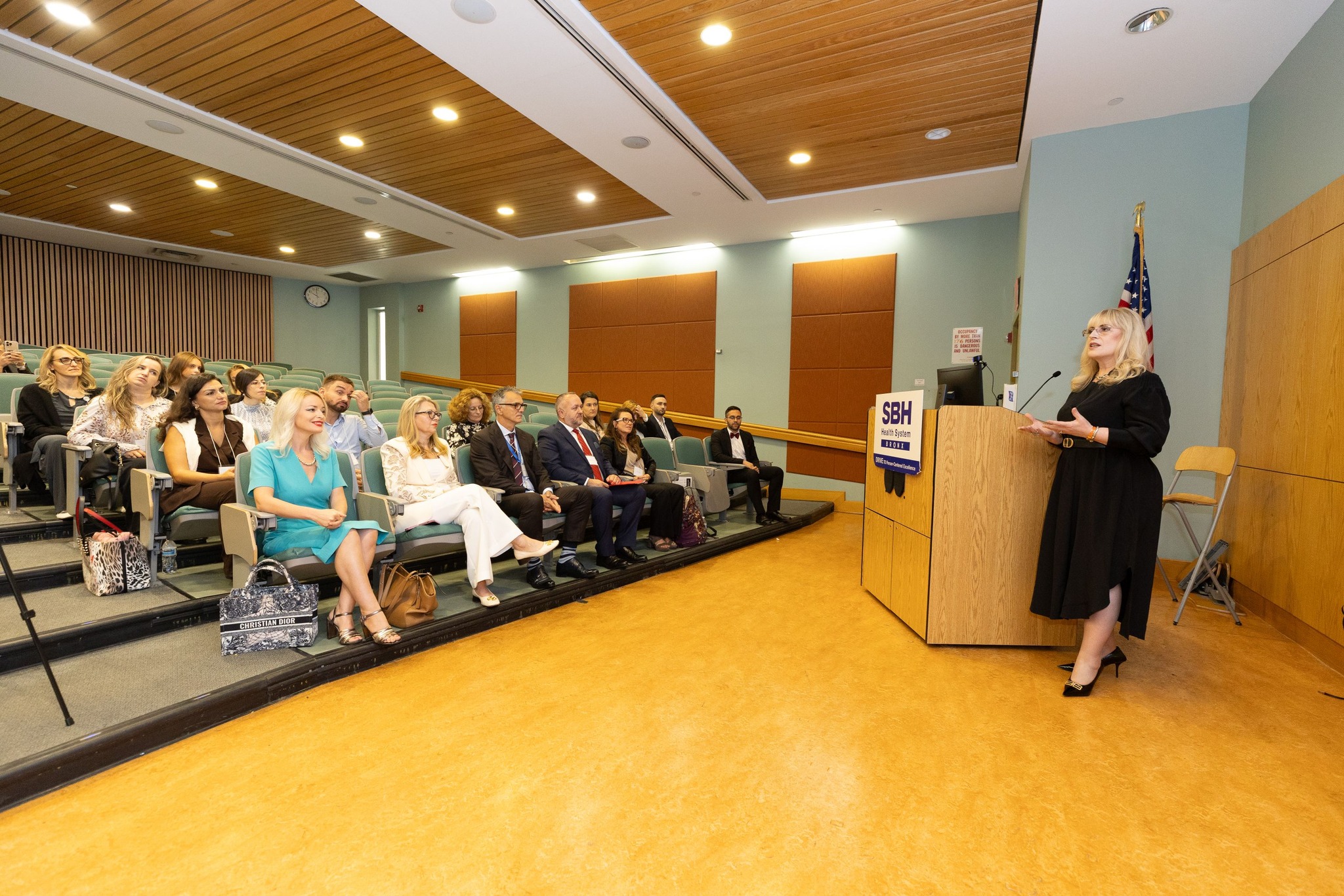 Roberta Panariti handing the check of 15,300 to BWH dr. Aliaj